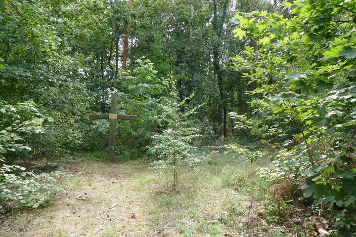 Und noch eine Begräbnisstätte liegt auf unserem Weg, ein Massengrab im Schützenwäldchen zwischen Hochlandstraße und der Straße Siedlung am Walde. Als die Rote Armee 1945 als Sieger nach Wilhelmshagen einmarschierte, trafen sie dort auf keinen Widerstand, sie konnte den Ort kampflos einnehmen. Trotzdem mussten nach ihrem Eintreffen 17 Tote in einem Gemeinschaftsgrab im Wald beerdigt werden, nur in Tücher oder Teppiche gehüllt. Sechs Frauen und Mädchen aus der "Siedlung am Walde", die von Rotarmisten vergewaltigt worden waren, nahmen sich das Leben. Nicht gemeinsam, aber vereint in Verzweiflung, Angst und Scham. Drei Zivilisten, die in einem Erdloch Zuflucht genommen hatten, wurden von den Russen erschossen - weil sie Stahlhelme trugen und für deutsche Soldaten gehalten wurden. Und andere Einwohner starben durch russische Hand.