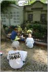 Auf dem Friedhof Wilhelmshagen treffen wir auf eine Schülerexkursion. Eine Religionslehrerin lässt ihre Steppkes erforschen, was man auf einem Friedhof sieht (Bäume, Wege, Gräber), wie alt die Verstorbenen geworden sind und was vielleicht man über die Familienverhältnisse von den Grabsteinen ablesen kann. Die ersten drei Schüler, auf die wir treffen, haben eine ganz besondere Aufgabe, sie sollen drei Minuten still vor einem Grab sitzen (toll!). Mit unserem Erscheinen hat sich das erledigt, sie erzählen uns gern von ihren Aufgaben. Auch mit der Lehrerin kommen wir in guten Kontakt.