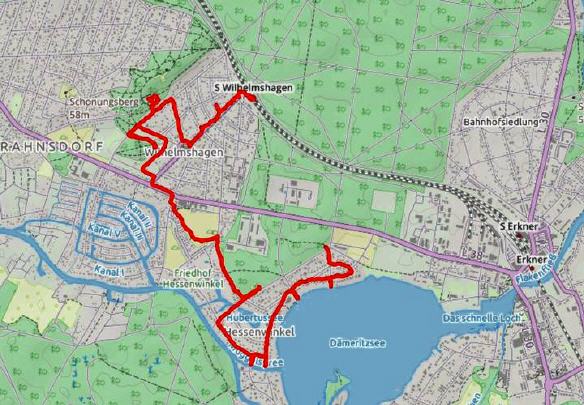 Mehr jottwede (jwd = janz weit draußen) geht in Köpenick nicht, unser Ziel Hessenwinkel ist der östliche Ortsteil von Köpenick. Am schnellsten erreicht man ihn über die S-Bahn-Endstation Erkner und kurvt dann mit dem Bus nördlich um den Dämeritzsee herum zurück. Das Bezirksamt Köpenick schwärmt von der Lage am See, "den großen Straßenbaumalleen, den grünen Plätzen im öffentlichen Raum, der Vegetation auf den Grundstücken (im Vorgartenbereich und in den teilweise parkähnlichen Gärten) und den künstlich angelegten Gewässern wie dem Hubertussee". Bevor die kleine Villenkolonie entstand, wurde in den Mooren Torf abgebaut ("gestochen").