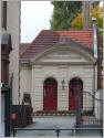 Das Rektorengebäude hebt sich mit seinen zwei Geschossen und dem Fachwerk unter dem Dach optisch von der Schule ab, ist aber zusammen mit dem Hauptgebäude errichtet worden. Der Fachwerkaufbau gehörte zu Kinzers favorisierten Architekturformen, wie man auch am Pumpwerk und am Umformerwerk sehen kann.