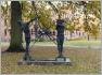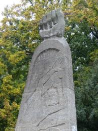 Das Denkmal auf dem Platz erinnert aber nicht an das Kriegsende, sondern an die Köpenicker Blutwoche, einen todbringenden Angriffs der Nazis auf politische Gegner, der in der Siedlung Elsengrund stattfand. Die Erinnerungsstele zeigt symbolisch die zur Faust geballte Hand eines Widerstandskämpfers, an der Reliefwand dahinter ist im sozialistischen Realismus "Unser friedlicher Aufbau" thematisiert.