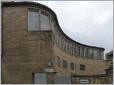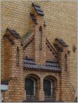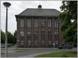 Gegenüber der Kirche steht das Gemeindehaus, ein "kraftvoller Bau, der mit seinen verfremdeten gotischen Pfeiler- und Bogenmotiven deutliche Anklänge an den Expressionismus zeigt" (so steht, es in der Denkmalschutzbegründung).