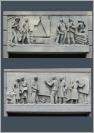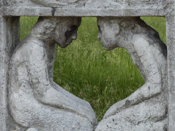 Und noch einen außergewöhnlichen Bau finden wir in Johannisthal in der Engelhardstraße. Viergeschossig mit 18 Fensterachsen, freistehend, verputzt, Flachdach, über den beiden repräsentativen Eingängen Reliefs, wie sie als Bauschmuck bei Schlössern, Residenzen und Bürgerhäusern beliebt sind. Es ist ein Versuchsplattenbau der Deutschen Bauakademie der DDR aus den 1950er Jahren, darauf muss man erstmal kommen (8). Die Platten sind unter dem Putz verborgen, und zwar von Anfang an und nicht so wie bei den jetzt sanierten Plattenbauten mit einer draufgepappten Dämmschicht, deren Wirkung (und Nebenwirkung) umstritten ist.