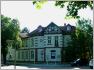 Zu Rahnsdorf gehört die Kolonie Wilhelmshagen, an der unser Spaziergang begann. Die Terraingesellschaft "Deutsche Volksbau-Aktiengesellschaft" entwickelte 1891 an der Eisenbahnlinie Berlin - Frankfurt/Oder die Villenkolonie Neu-Rahnsdorf (seit 1902 Wilhelmshagen). Dazu gehörte natürlich der Bahnhof, denn ohne einen Bahnanschluss ließen sich die Grundstücke nicht vermarkten (3). Bald siedelte sich die Heilanstalt einer Berufsgenossenschaft hier an, mit einem Hauptgebäude wie ein Herrenhaus und mehreren Backsteinbauten, die im umgebenden Park verteilt sind. Um den Bahnhof und an der Straße zur Taborkirche entstanden Landhäuser und Gründerzeitvillen.