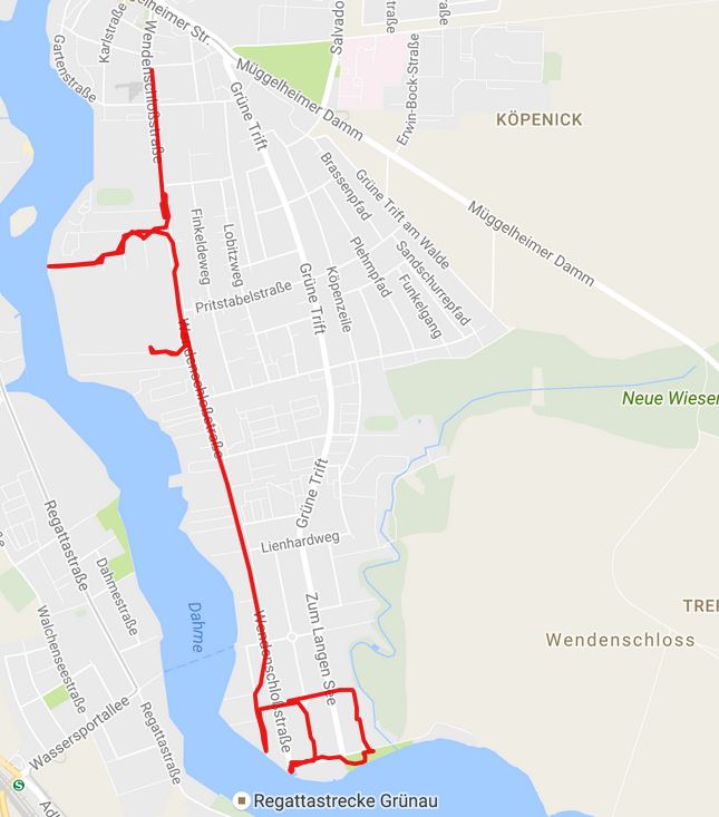 Wir sind wir entlang der Wendenschloßstraße unterwegs, nehmen den Landweg parallel zu Fontanes Bootsfahrt. An der Wendischen Spree liegt Wendenschloß, und wenn ich nicht "das" Wendenschloß schreibe, dann wird schon klar, dass es hier um eine Ortslage geht und nicht um Gebäude. Ein Schloss hat es hier nie gegeben, aber ein Gasthaus und Ausflugslokal, das sich Wendenschloß nannte. Kurz vor 1900 muss es gegründet worden sein, es war ein Etablissement mir großem Garten und Festsaal für 1.200 Personen. Gegründet wurde es als "Eichhorn", auch den Namen "Freundschaft" soll es einmal getragen haben. Man kann vermuten, dass damit in der DDR-Zeit auf das große sozialistische Brudervolk angespielt wurde, das an diesem Ort mit einer Einladung an die anderen Alliierten Nachkriegsgeschichte geschrieben hat.