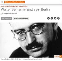 Der 125.Geburtstag von Walter Benjamin war für den Deutschlandfunk Kultur Anlass, ein Feature über den Philosophen auszustrahlen, der seine "Kindheit um 1900" in Berlin verlebt hat. Vor zwei Jahren bin ich zu den Stätten von Walter Benjamins Jugend flaniert und habe hier unter dem Titel "Vergessenes zurückgewinnen" darüber berichtet. Jetzt habe ich den Autor des Radiobeitrags zu einigen dieser Orte und zum Walter-Benjamin-Platz geführt. Sowohl der Südwestfunk als auch Deutschlandradio Kultur haben unterschiedliche Features hierüber gesendet. Ausschnittweise sind hier das Manuskript und eine Tonauskopplung der DLF-Sendung anzusehen bzw. anzuhören.