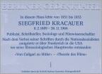 (1) Kracauer wohnte von 1930 bis 1933 in der Sybelstraße. Im April 2010 bekam der Holtzendorffplatz am Ende der Sybelstraße seinen Namen. An seinem Wohnhaus wurde eine Gedenktafel angebracht.