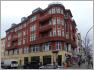 Bruno Taut hat am Kottbusser Damm Ecke Bürknerstraße einen Eckbau errichtet, der sich mit wellenförmiger Fassade und Ornamenten an den Balkonbrüstungen stark von seinen typischen Bauten abhebt, die vor allem Farben als Ornamente einsetzten (8). Im südöstlichen Teil des Reuterkiezes stehen weitere Taut-Bauten, die wir uns für einen weiteren Spaziergang aufgehoben haben. Zum Abschluss finden wir in der Friedelstraße einen Griechen, aus dessen Küche Düfte ziehen von geröstetem Knoblauch und von einem Pfannengericht, das man ein Ideechen früher hätte vom Herd ziehen sollen.