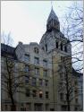 Zwei Kirchen - eine evangelische und eine katholische - stehen in der Nansenstraße. Die Nikodemuskirche ist - ungewöhnlich für einen evangelischen Kirchenbau in Berlin - in die Blockrandbebauung einbezogen. Tatsächlich war ursprünglich ein freistehendes Gotteshaus geplant, das sich die Gemeinde dann aber nicht mehr leisten konnte. Franz Schwechten (6) sollte auf dem Reuterplatz einen Kuppelbau für 1.100 Gläubige errichten. Den bescheideneren Bau hat Kaiserin Auguste Victoria, die "Kirchenjuste" (7) unterstützt, entworfen wurde er - nomen est omen - von Christoph Gottlob. Nach Kriegszerstörung wurde die Nikodemuskirche wieder aufgebaut. Die beiden Portalfiguren - die Apostel Petrus und Paulus - erinnern daran, dass der nicht verwirklichte Bau auf dem Reuterplatz „Peter-und-Paul-Kirche“ heißen sollte.