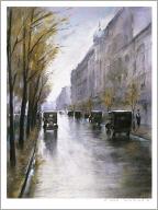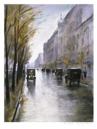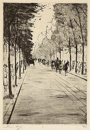 Immer wieder beschäftigte ihn die Tiergartenstraße, auch wenn er "da nicht hingehört, weil jeder in der Umgebung bleiben soll, die ihm ziemt". Sie ist "die schönste Straße zum Spazierengehen, vorbei am Park und an den stillen Villen, in denen kluge, vornehme Menschen wohnen. Auf dem Fahrdamm rasen Automobile einher und schreien wütend, wenn ihnen etwas störend im Wege steht. Sie kreischen laut, bähen wie ein Schaf oder brummen wie ein Bass. Nur immer vorwärts, man kann gar nicht schnell genug an diesem überflüssigen grünen Bäumen vorbeikommen".