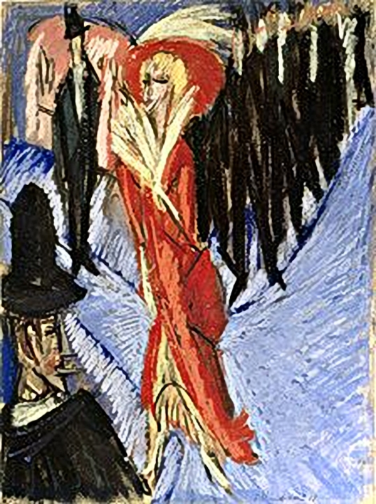 "Nur die sehr hübsche, allzu hübsche Dame da drüben, die in aller Gemächlichkeit spazieren geht und mit dem Handtäschchen schlenkert - aha! der Schutzmann sieht sich nach ihr um. In dieser emsigen Stadt Berlin sind Spazierengehen und Laster so ungefähr dasselbe".