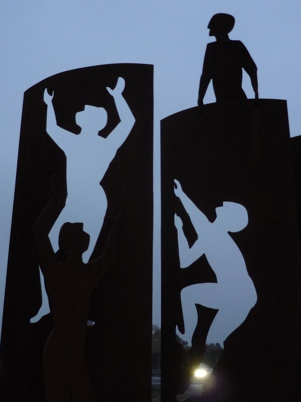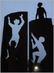 Mauerdenkmal Lichtenrade Das Mauerdenkmal an der Stadtgrenze von Lichtenrade und Mahlow zeigt das Überwinden, Durchdringen und Öffnen von Mauern. Auch diese Plastik arbeitet mit dem Positiv und Negativ von ausgestanzten Figuren, wobei jede Kategorie eine eigene Symbolik bekommen. Die herausgestanzten Figuren erklimmen und übersteigen vier Mauersegmente, die ausgestanzten Stahlplatten symbolisieren die durchdrungene Mauer.