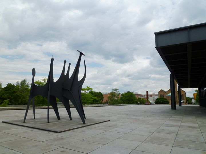 Die menschliche Gestalt als Silhouette Eine Figurengruppe? Ein Objekt aus Stahlplatten mit sieben Standfüßen und sieben Spitzen, sechs davon mit Köpfen - dieses Kunstwerk von Alexander Calder vor der Neuen Nationalgalerie ist weltbekannt. Ist es eine Gruppe von Personen, deren Silhouetten miteinander verbunden sind? Calder nennt es "Köpfe und Schwanz".