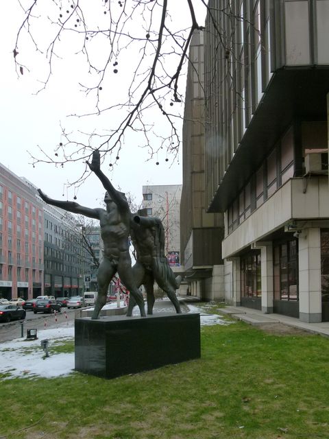 Uns geht es heute um Freiplastiken, die sich nicht in ein Bauwerk einfügen, sondern einen autonomen Platz im Stadtraum gefunden haben. Nicht die realitätsgetreuen wollen wir uns anschauen, sondern die Bildhauerwerke mit einem wie auch immer gearteten Abstraktionsgrad. Als Flaneure waren wir überfordert, unsere heutigen Ziele in einem Zuge zu besuchen, zu weit sind sie im Stadtraum verteilt. Die meisten sind uns bei früheren Stadtrundgängen begegnet, wir stellen sie hier in einen neuen Kontext. Für diesen Bericht haben wir aber auch einige wenige besucht, die räumlich beieinander liegen.