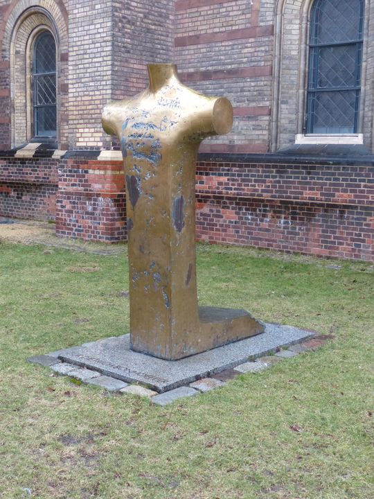 An "seiner" Zionskirche sollte das Denkmal 1987 - zwei Jahre vor Ende der DDR - aufgestellt werden. Aber: Die Zionskirche gab der Bürgerrechtsbewegung gegen das DDR-Regime Unterschlupf und Unterstützung, wieder stand diese Kirche für den Widerstand gegen Unrecht und Unterdrückung, deshalb verhinderte die Stasi die Aufstellung des Denkmals. Erst nach der Wende konnte die eindrückliche, kraftvolle Plastik ihren Platz an der Kirche finden.